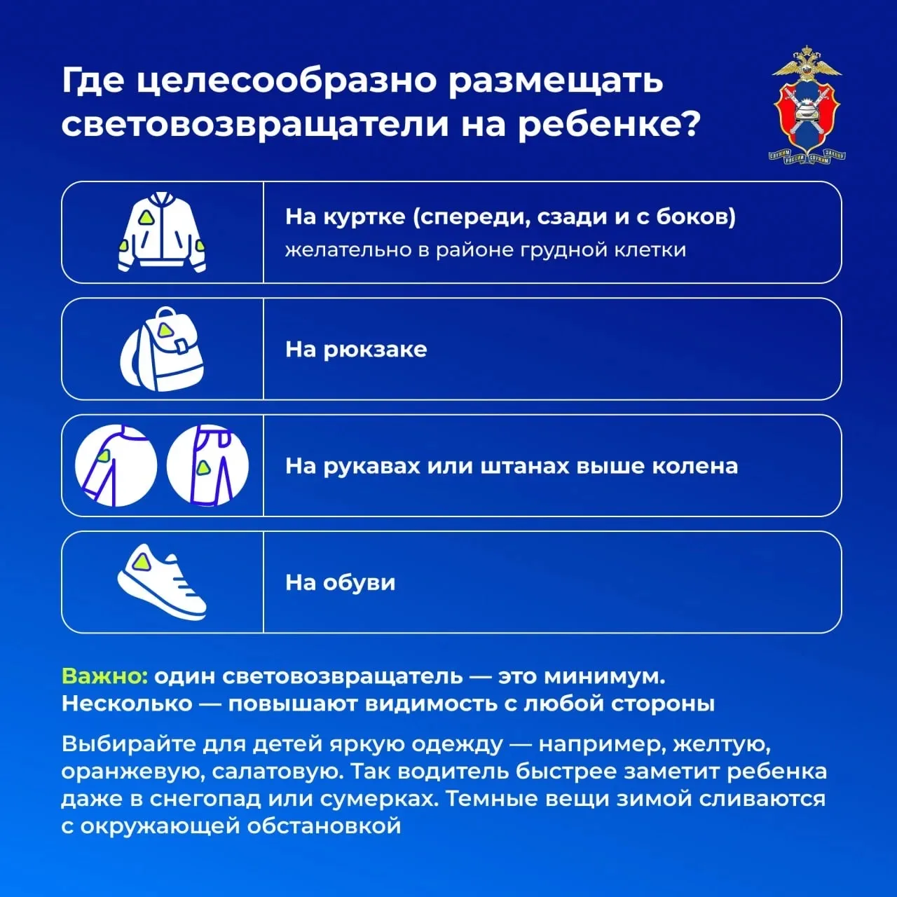 В новых карточках сегодня рассмотрим, почему водителям и пешеходам зимой нужно быть особенно внимательными Пешеход должен быть заметным на дорогах - в этом помогут световозвращающие элементы Расскажем, как разместить их правильно на одежде ребенка.