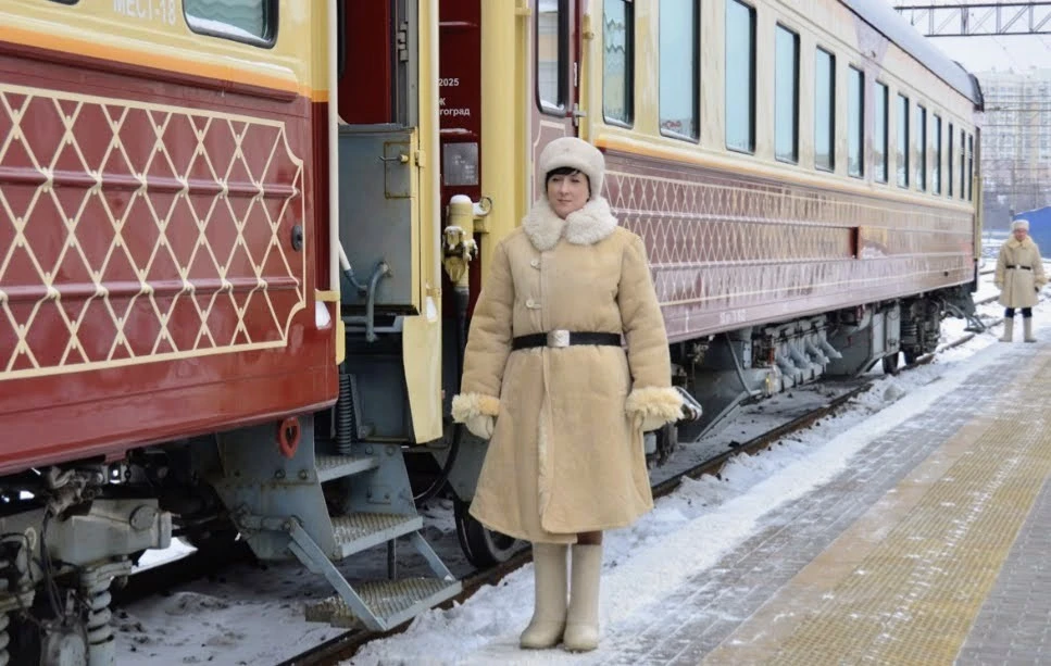 Всё началось на вокзале в Екатеринбурге, где нас встретили улыбчивые проводницы и нарядный новогодний поезд в стиле XX века. Сразу почувствовали сказочное настроение!