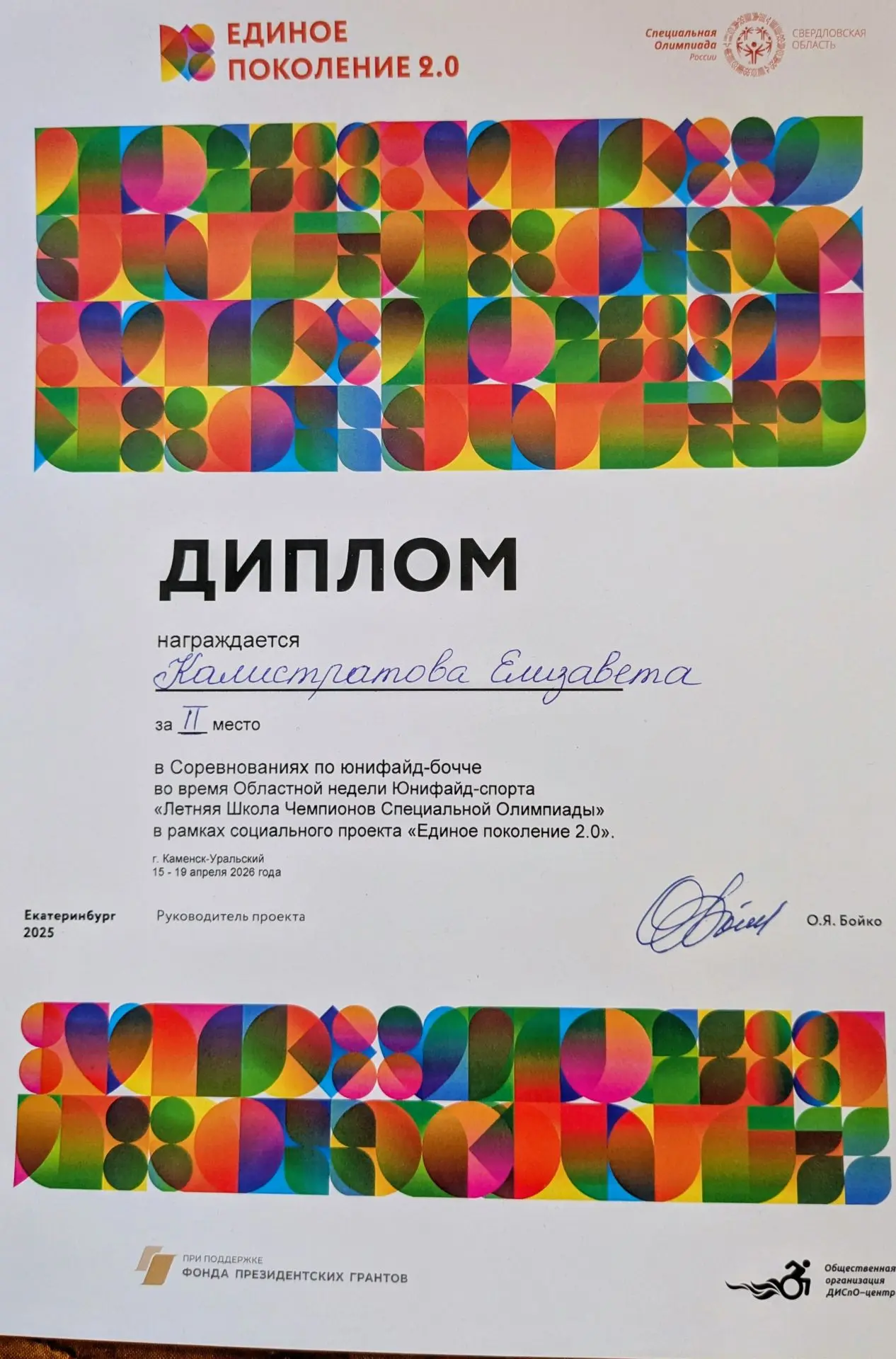 Поздравляем Елизавету Калистратову с успешным выступлением на инклюзивном турнире по бочче с сотрудниками Уральского банка ПАО «Сбербанк». В напряжённой борьбе среди шести команд-участниц коллектив, в котором выступала Елизавета, завоевал почётное II место. Это яркое свидетельство спортивного мастерства, командного духа и упорства нашей ученицы. Желаем Лизе новых побед, уверенности в себе и дальнейших успехов в спорте!