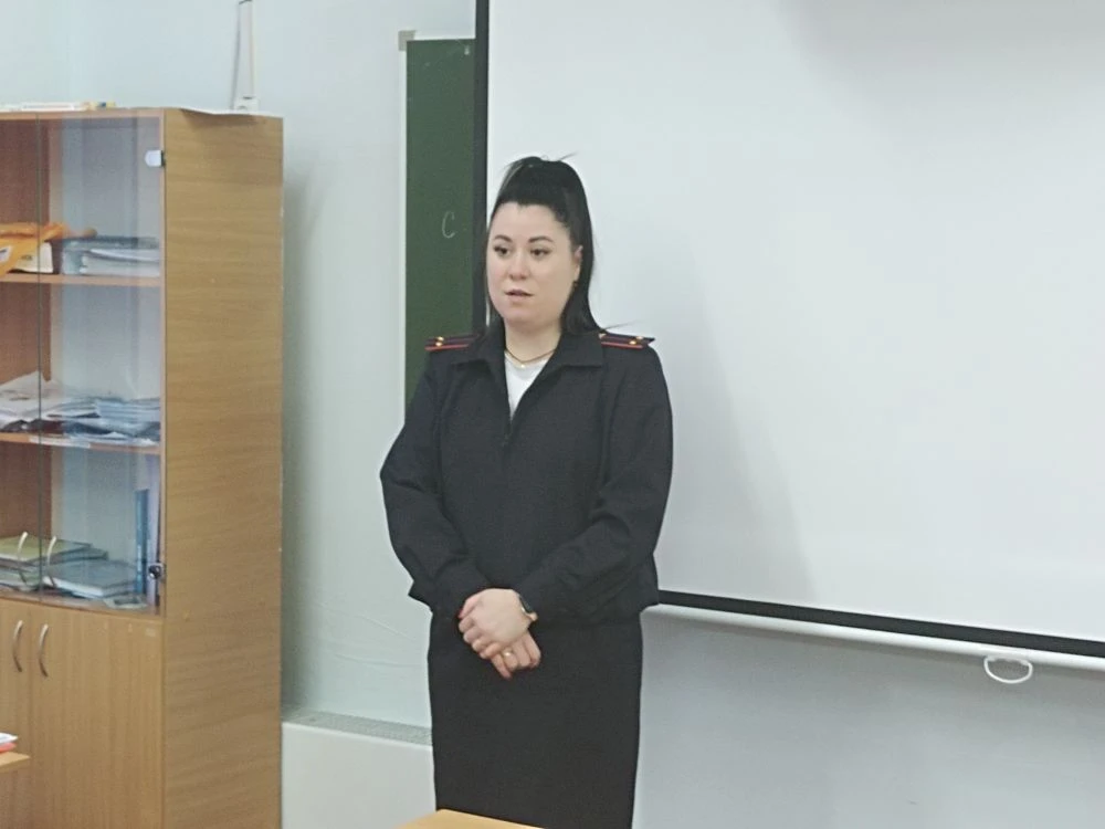 👮♂️ 18 ноября 2025 года в нашей школе прошло профилактическое мероприятие, направленное на формирование правовой культуры и пропаганду здорового образа жизни среди подростков. Состоялась встреча обучающихся 8-9 классов с инспектором по делам несовершеннолетних (ПДН) – Разиной Дарьей Эдуардовной.