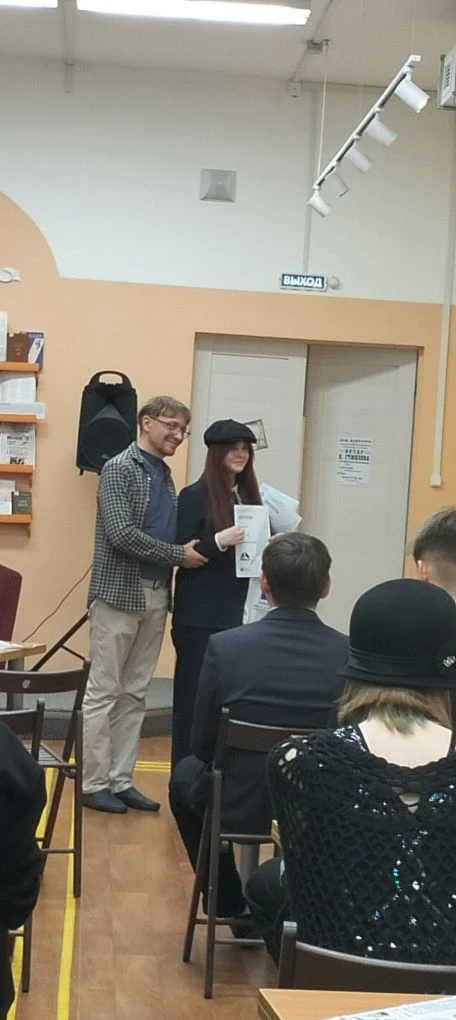 Во 2 туре 13 финалистов встретились в Пушкинке в арт-кафе "Бродячая собака", где поэты боролись за титул Короля поэтов. Их выступление оценивало компетентное жюри. Учащиеся нашей школы выступили достойно,продемонстрировав творческие способности. В результате Адельшин Максим занял 2 место!!! А Саша и Ева получили дипломы участников конкурса!!!Участников - поэтов сопровождали 2 команды поддержки,учителя литературы, родители. Команды приняли участие в викторине "Серебряный век русской поэзии". В результате команда "Эпоха модерна" (8"А","Б" классы) заняли 2 место!!! Вторая команда стала участницей!!! Подготовили призёров и участников учителя русского языка и литературы: Бабакина Н.Н и Муравьева.Л И.