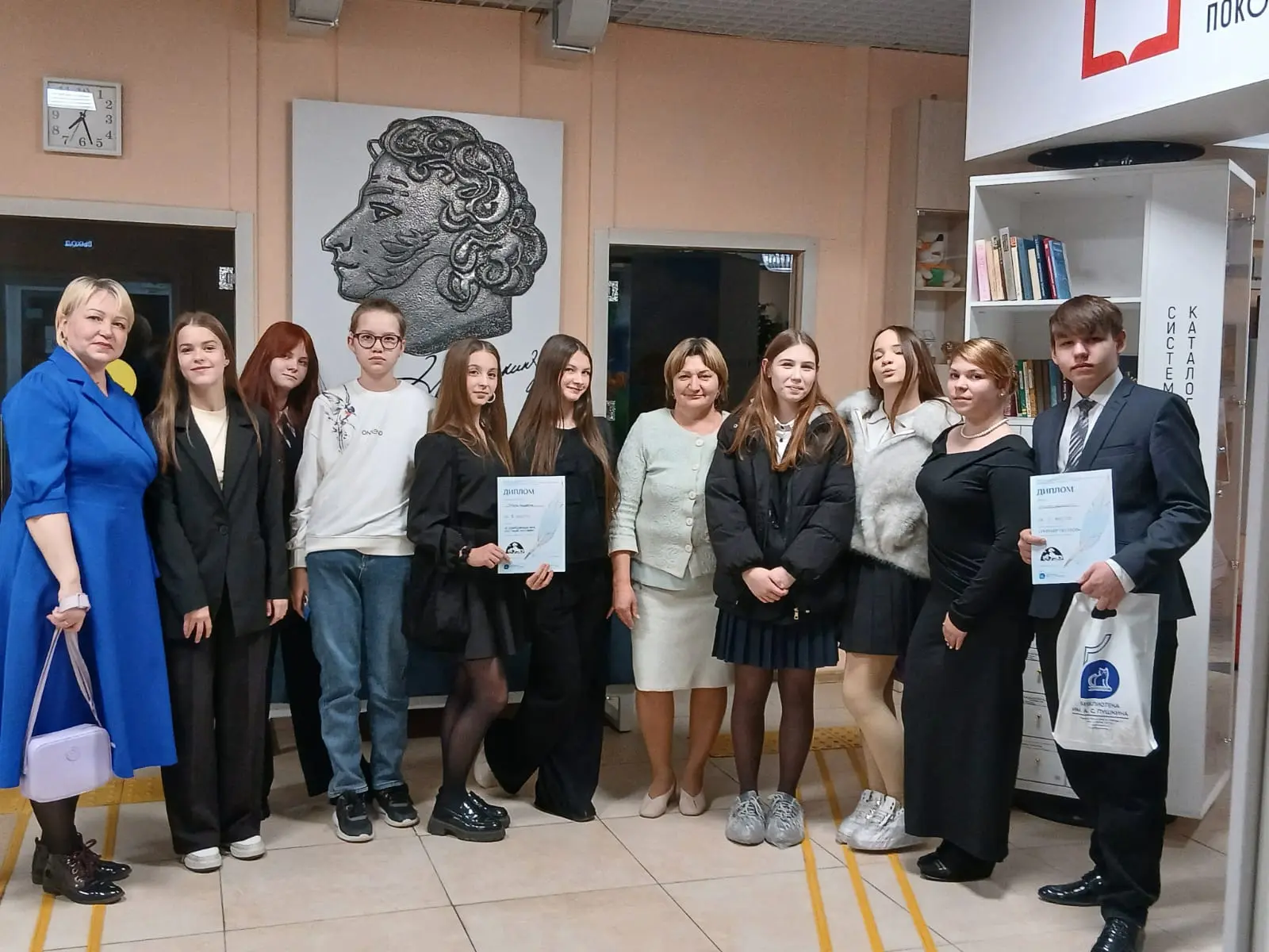 24 ноября в библиотеке имени А.С.Пушкина в рамках Молодежной недели состоялся творческий конкурс чтецов "Турнир поэтов", посвященный поэтам-юбилярам Серебряного века.Для того чтобы попасть в финал,нужно было выбрать и выучить стихотворение, создать образ одного из поэтов Серебряного века.Нашу школу представляли 3 учащихся 8-х классов: Адельшин Максим(С.Есенин), Крутикова Александра (А.Ахматова), Белых Ева(В.Маяковский). Все они прошли в финал.