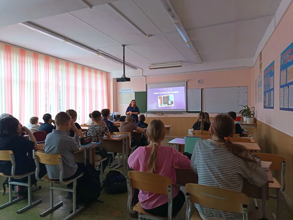 Для учащихся 5-9х классов учитель истории Малинина Марина Александровна и советник директора по воспитанию организовали познавательный квиз «Конституция».