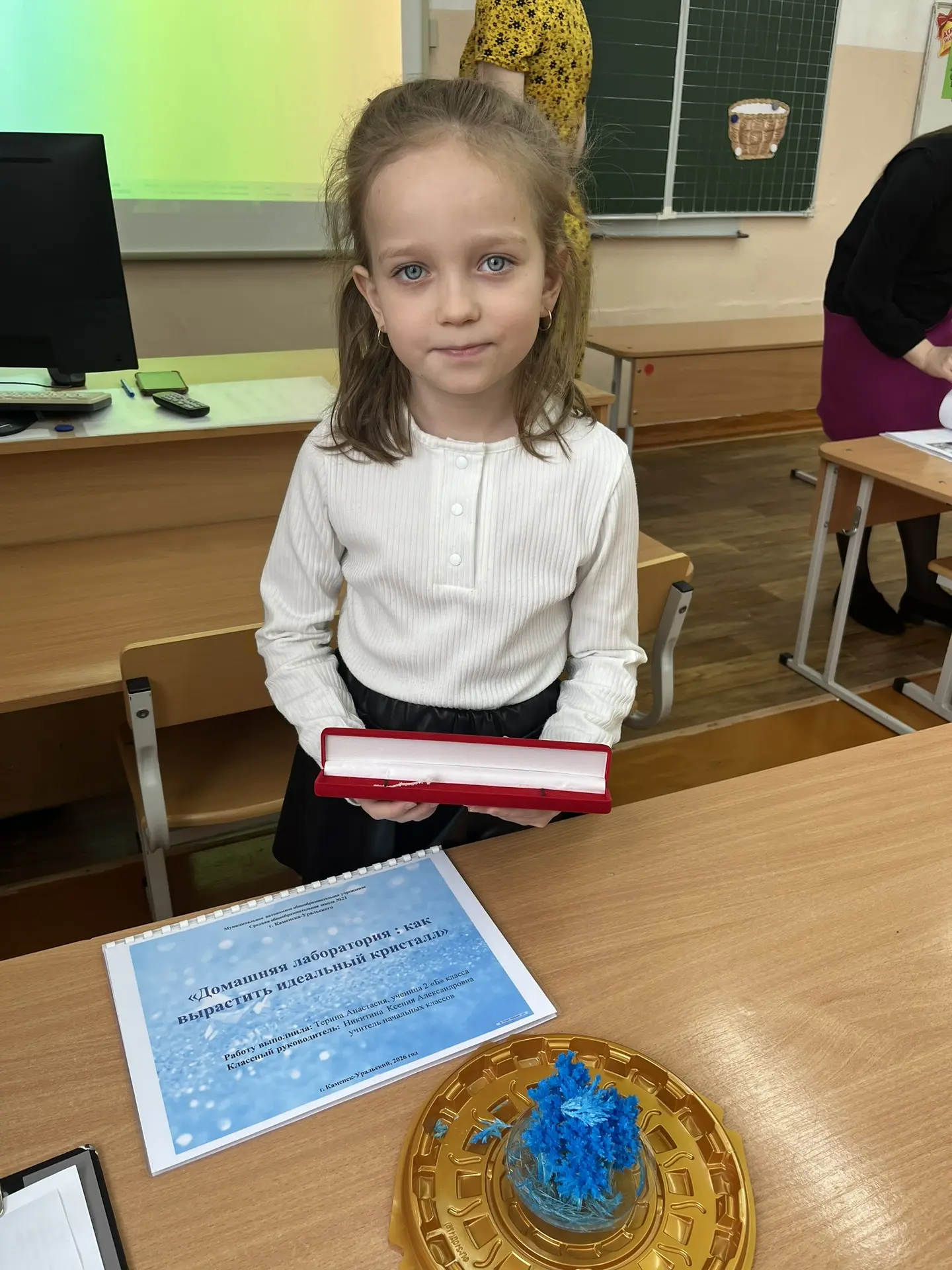 ✨От нашей школы участвовали Терина Анастасия ученица 2 «Б» класса и Никитина Ксения Александровна- классный руководитель. Анастасия подготовила интересную работу на тему: «Домашняя лаборатория: как вырастить идеальный кристалл».