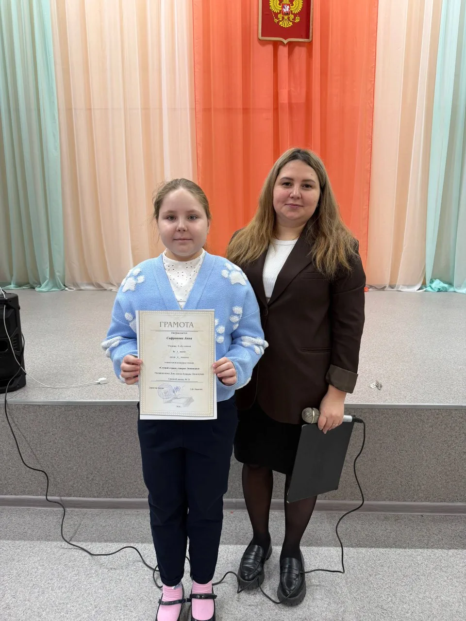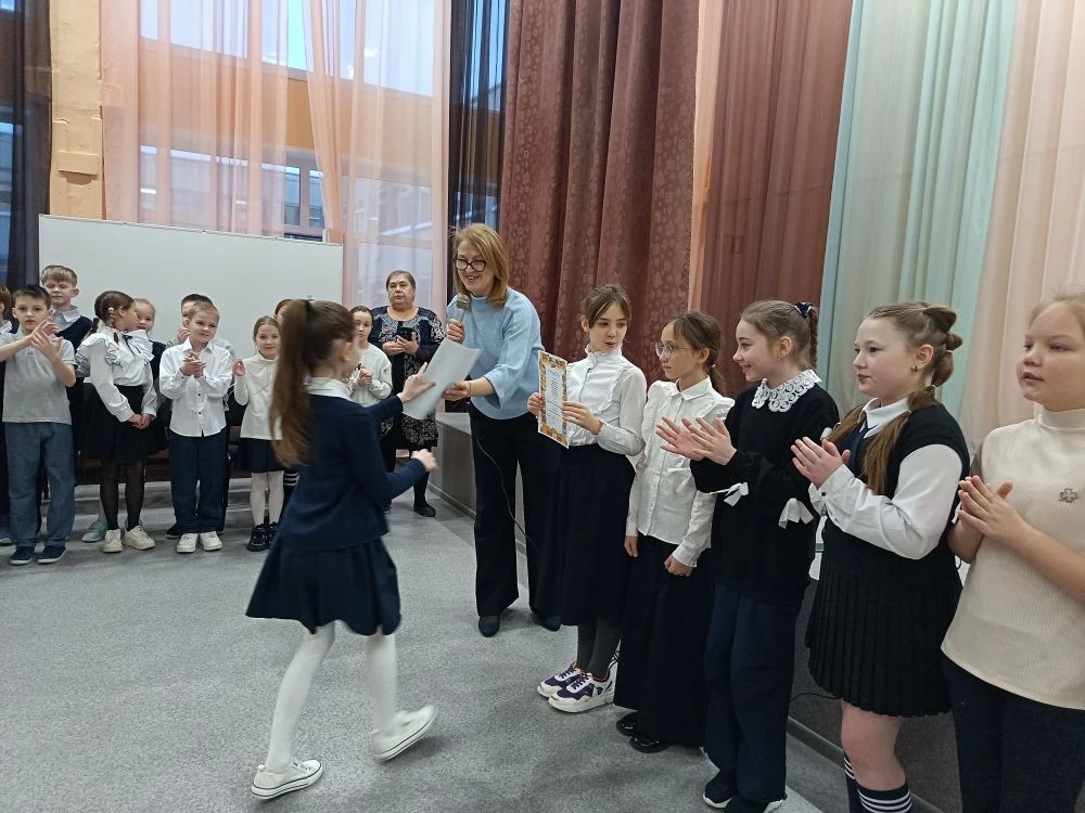 ✏️ Сафронова Анна, ученица 4 «А» класса, была награждена за 1‑е место в школьном конкурсе чтецов «Слушай, страна, говорит Ленинград» среди учащихся 4‑х классов.