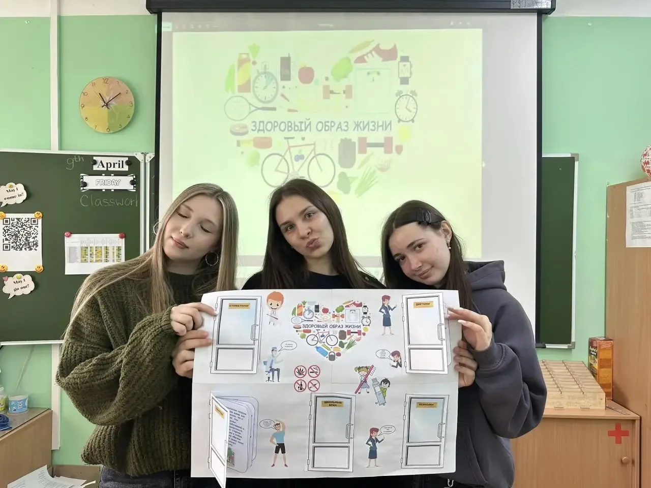 Кульминацией занятия стало создание тематического плаката. Учащиеся собрали на нем ключевые правила ЗОЖ — от режима сна до отказа от лишнего.