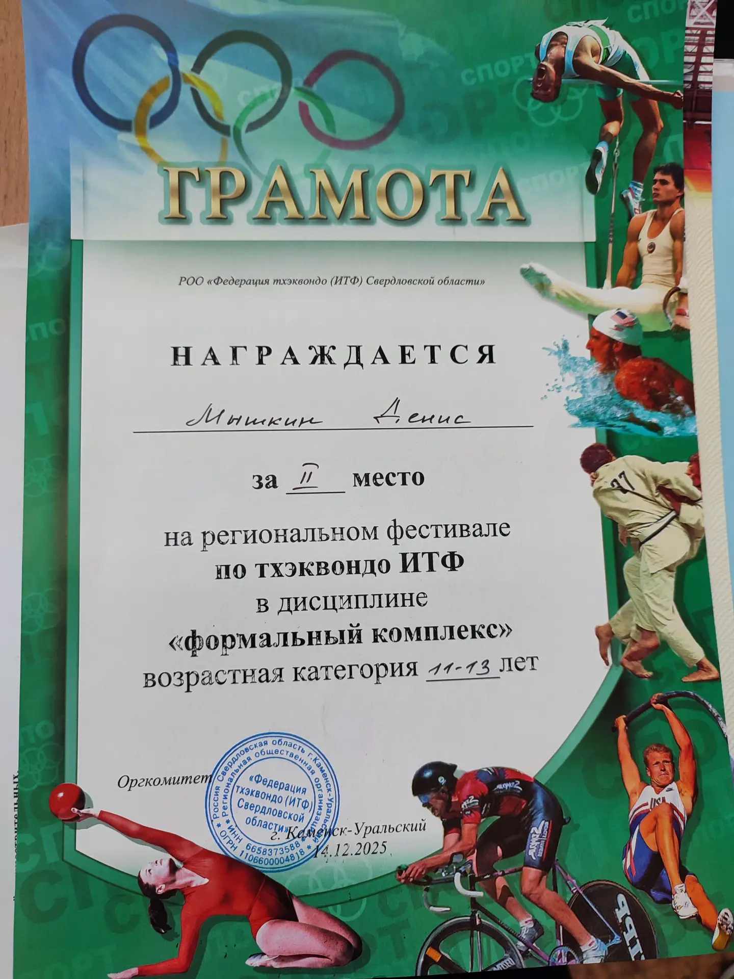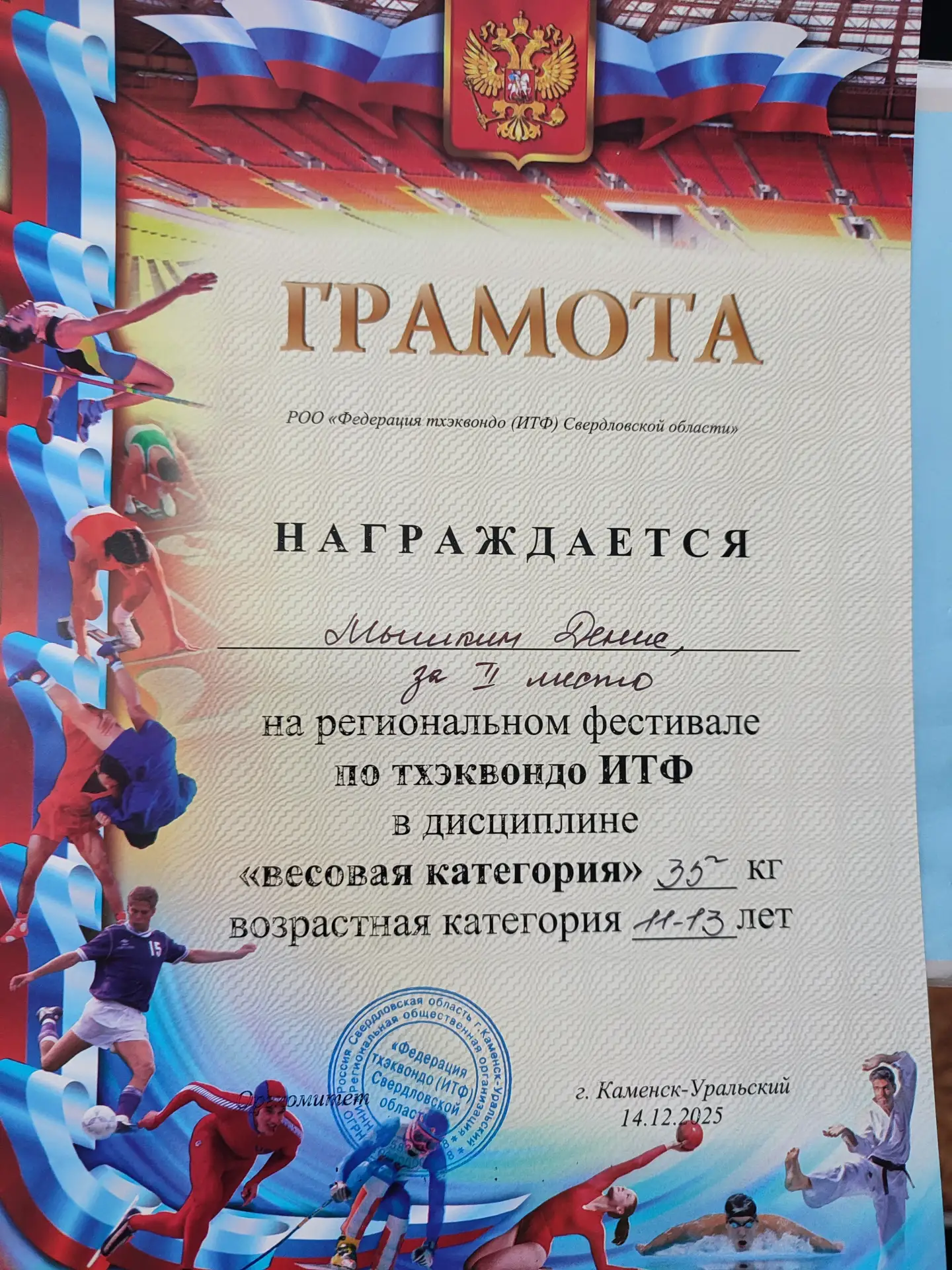Ученик 4 "Б" класса Мышкин Денис одержал очередную победу в соревнованиях по тхэквондо ИТФ, прошедших 14.12.2025 в Каменске-Уральском. Поздравляем победителя, желаем дальнейших успехов!