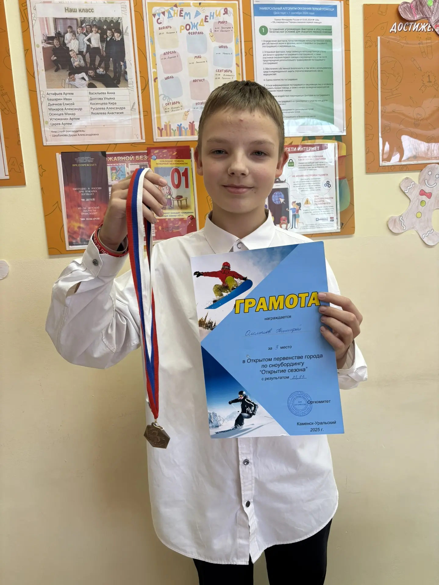 Поздравляем Оломпиева Тимофея, ученика 4 "Г" класса, который стал бронзовым призёром Открытого первенства города по сноубордингу "Открытие сезона"! Это событие прошло в праздничной атмосфере зимнего спорта и привлекло внимание множества юных спортсменов и болельщиков.