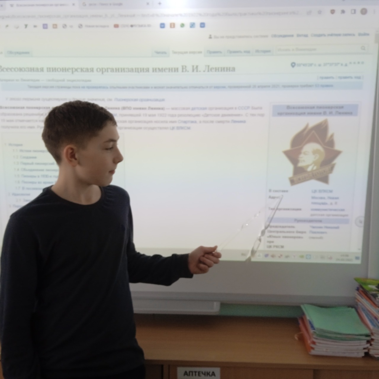 В рамках акции «ВЕК ПИОНЕРИИ: 100 ЛЕТ ЗА 100 ДНЕЙ», которая посвящена празднованию Дня Пионерии, ученики 6 Г класса провели мини-исследование на данную тему. Ребята самостоятельно определили круг вопросов, разделили их между собой, нашли на них ответы и презентовали результаты своего мини-исследования перед классом. Они очень творчески подошли к этому: нарисовали символику, спели гимн, создали презентацию по истории пионерии. Ребята вдохновились идеями пионеров и решили в 4 четверти взять несколько законов пионерии себе на вооружение.