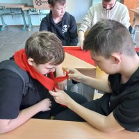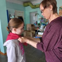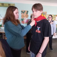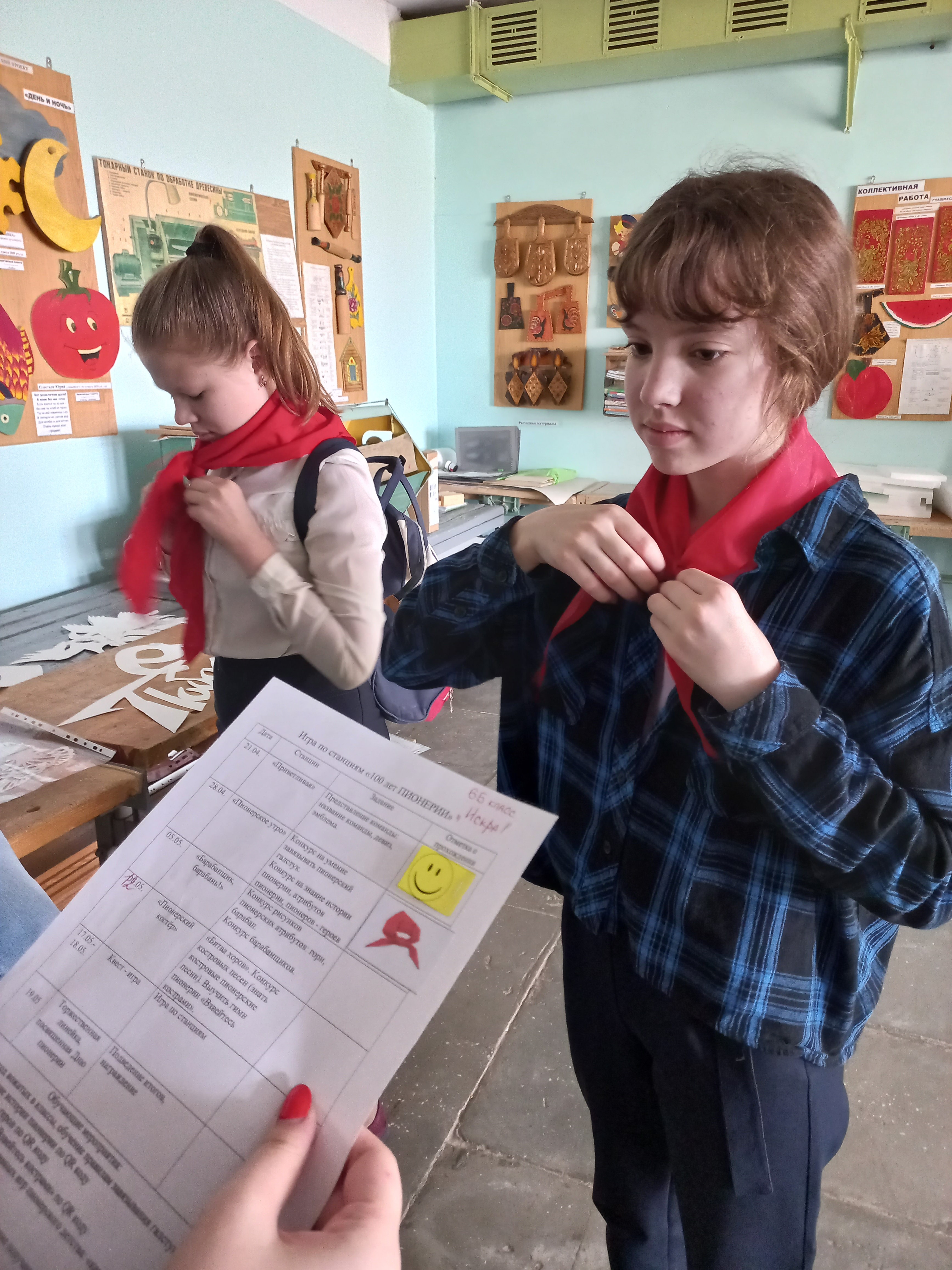 Продолжается увлекательная квест-игра «Пионерское приключение или нескучное путешествие по страницам истории Пионерии», посвященная 100 - летию со дня рождения пионерской организации. 21.04. состоялась торжественная линейка открытия игры – станция «Приветливая». Все классы получили маршрутные листы для путешествия и задания на следующую станцию «Пионерское утро» (с 25 по 28 апреля) в виде QR – кодов со ссылкой на информацию для подготовки к конкурсу. В течение дня 25 апреля ребята средних и старших классов организованно прошли обучение завязыванию пионерского галстука и затем научили этому учащихся начальных классов. 28 апреля состоялось подведение итогов работы на станции «Пионерское утро». В течение дня команды от каждого класса прошли состязания: викторина об истории пионерии, викторина о пионерах – героях, конкурс на умение завязывать пионерский галстук. Все участники успешно прошли испытания по истории пионерии, завязыванию галстука. В викторине о пионерах-героях особо отличились ребята 4 «А» и 8 «В» классов, они не только ответили на вопросы, но и очень подробно и интересно рассказали о пионерах-героях.