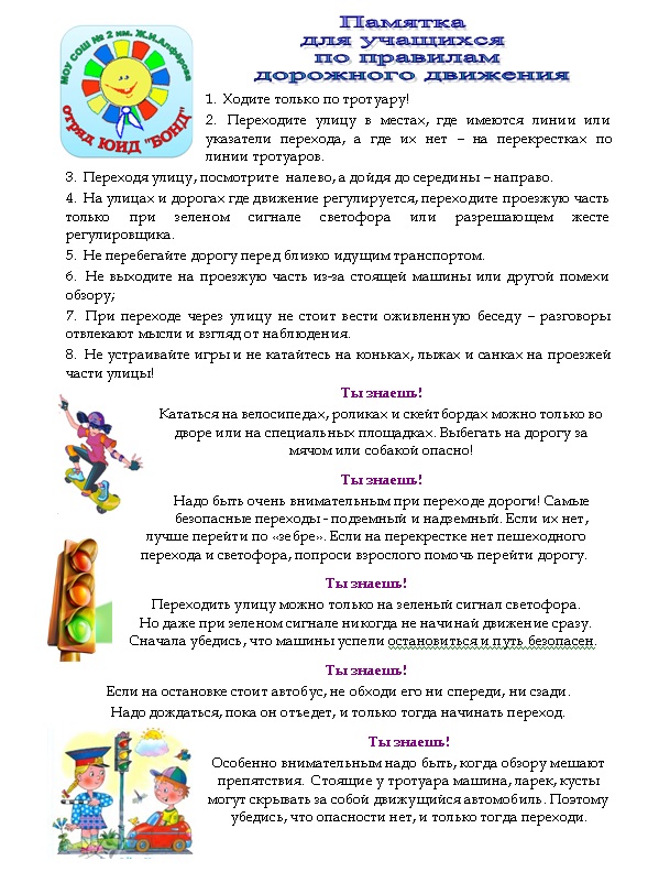 1. Соблюдайте правила дорожного движения, правила пользования общественным транспортом, выполняйте правила поведения в общественных местах.