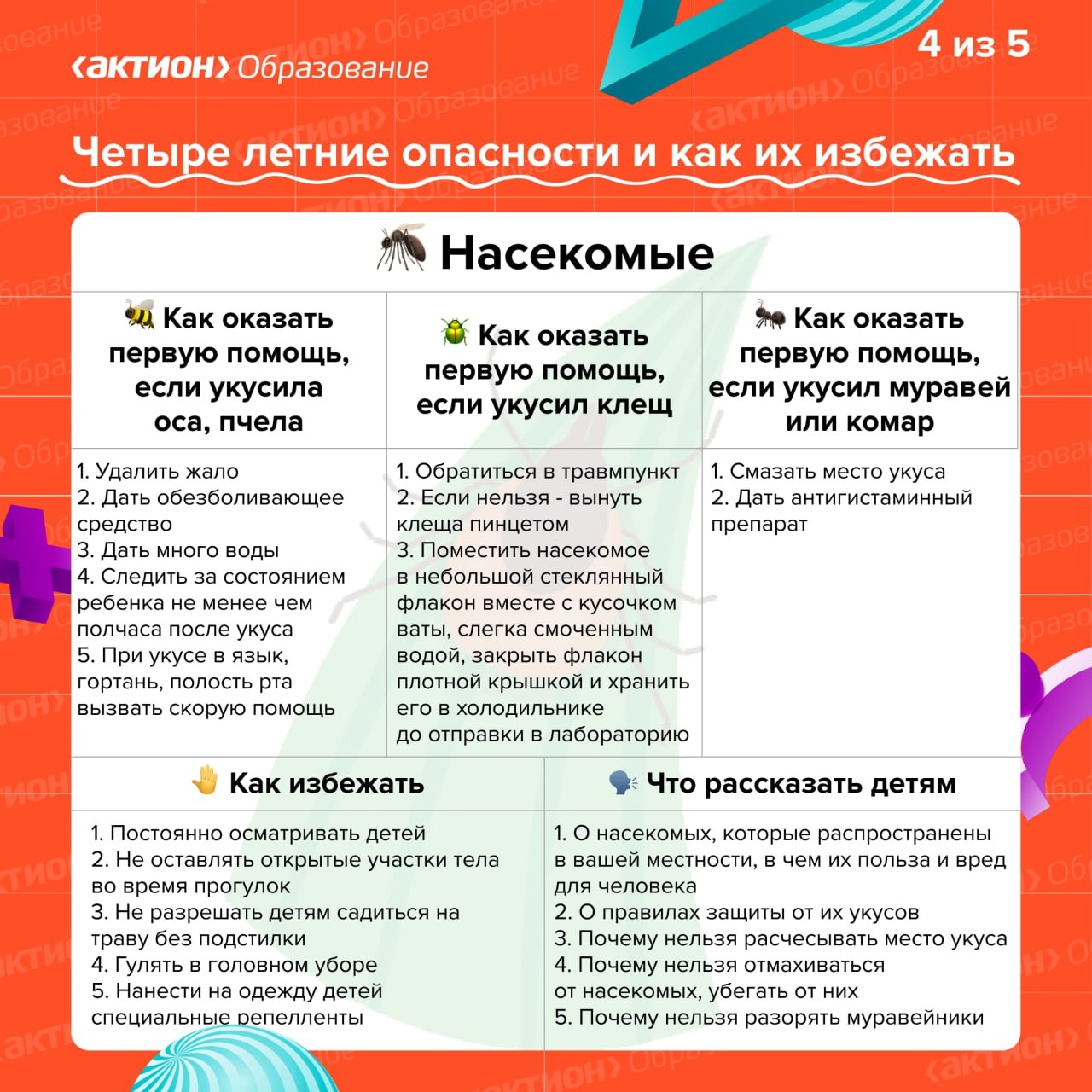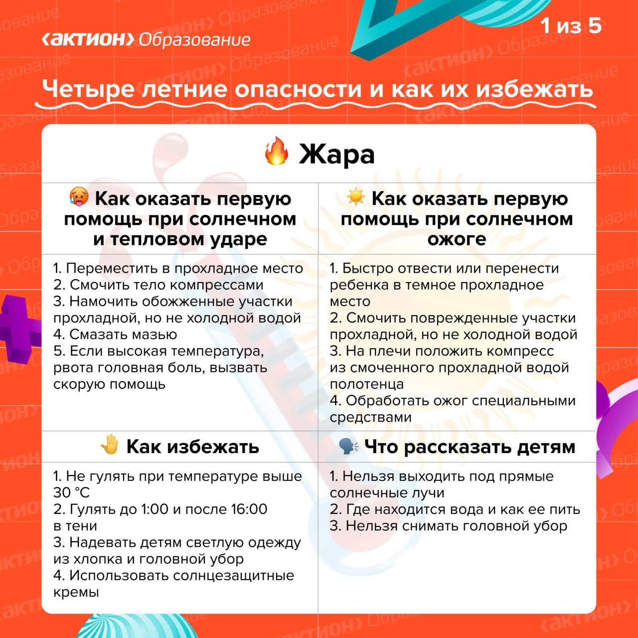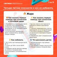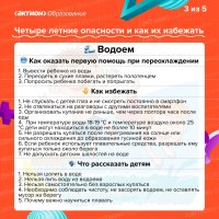 Лето – это время, когда ребенка трудно загнать домой, он готов играть на улице с раннего утра и до заката. Для того, чтобы о лете остались только самые радужные воспоминания, необходимо побеспокоится о безопасности. Мы подготовили памятки «Четыре летние опасности и как их избежать». Изучайте их и наслаждайтесь летом.
