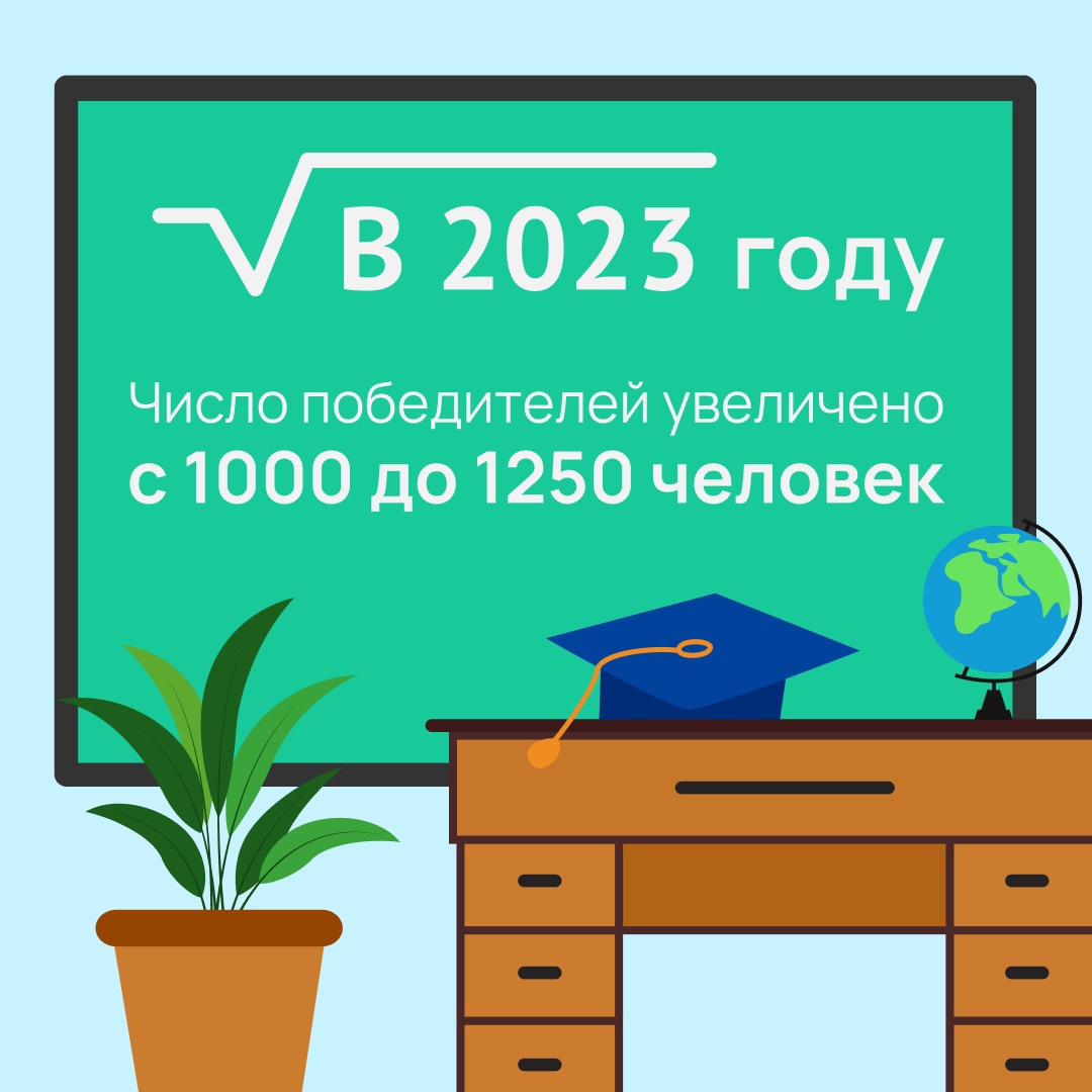 Теперь вместо 1000 педагогов, как было до 2023 года, такие премии смогут получить 1250 учителей. Подробнее о конкурсе рассказываем в карточках: