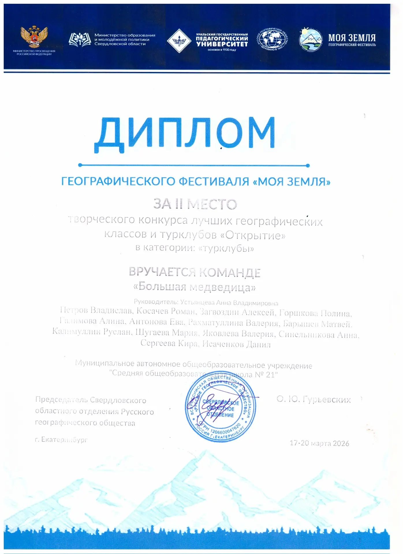 Высокое 2 место — это не только признание знаний и таланта ребят, но и стимул для новых открытий и побед. Летом ребята отправятся в загородный центр «Дружба» на региональную профильную смену РГО «Мир открытий». Поздравляем турклуб «Большая Медведица» с заслуженной наградой и желаем дальнейших успехов!