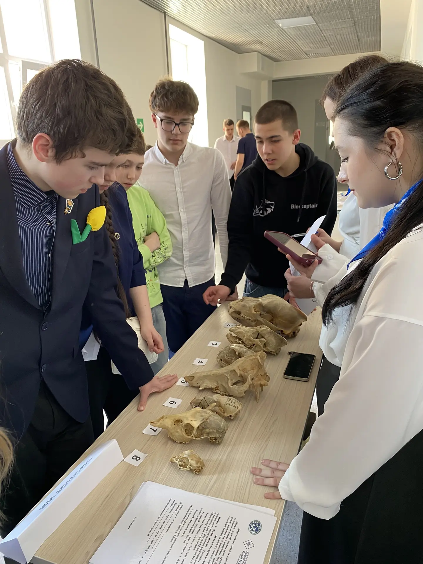 Первое — интеллектуальная игра-«вертушка». Здесь ребята демонстрировали свои знания в самых разных областях географии: определяли животных по их черепам, рассказывали о назначении и устройстве географических приборов, учились различать полезные ископаемые и решали другие увлекательные задачи.