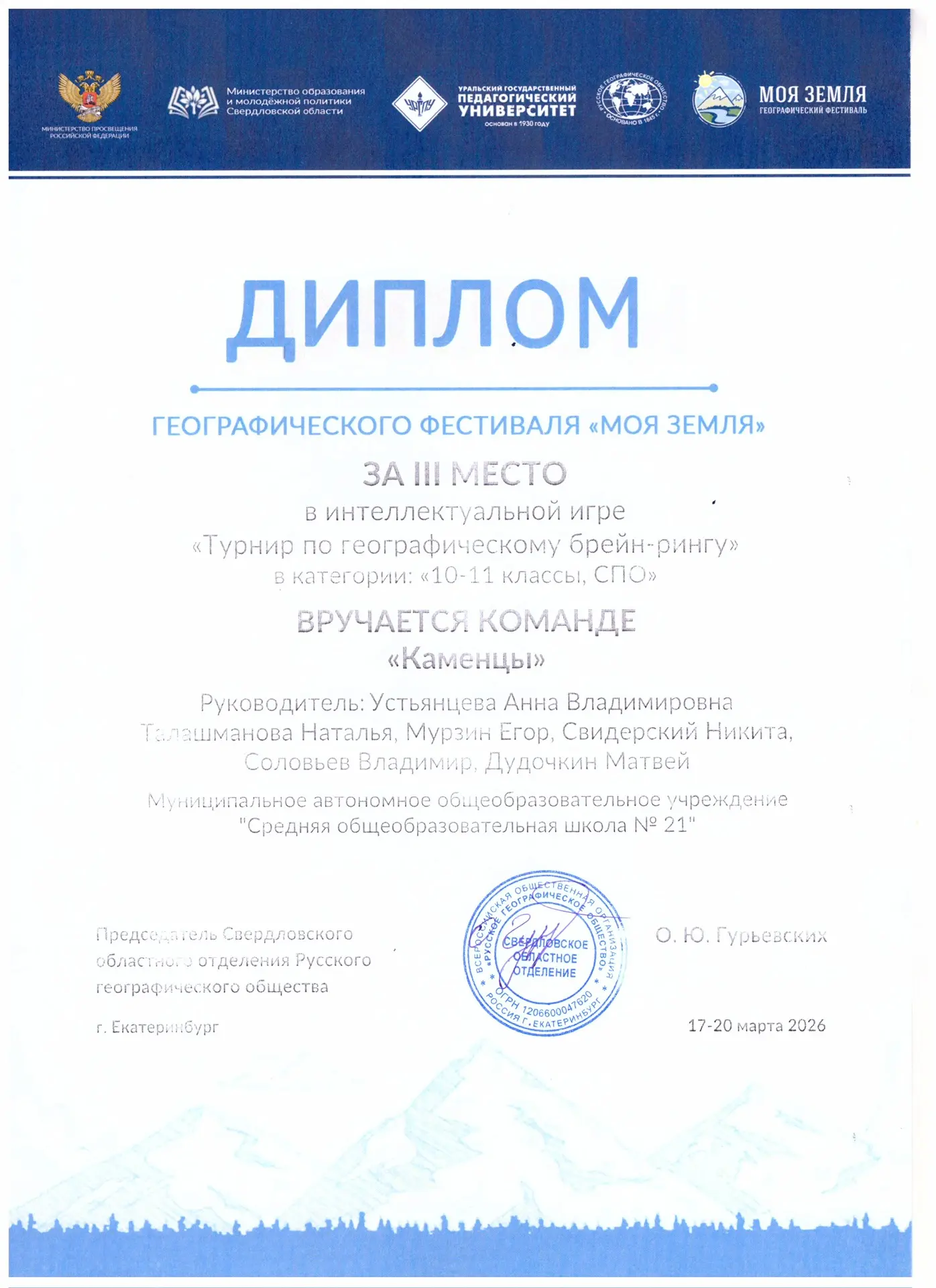 Руководила подготовкой ребят учитель географии Устьянцева А. В.