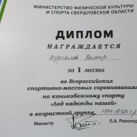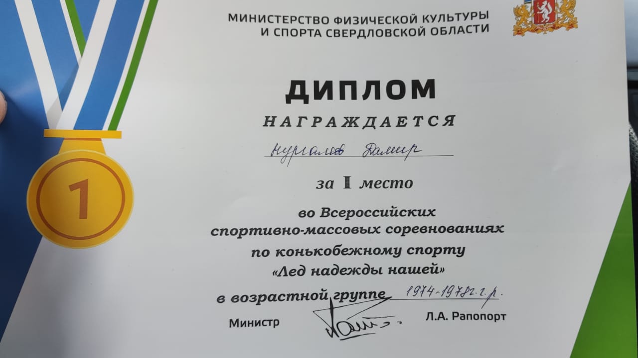 6 февраля 2022 года на стадионе «Энергетик» состоялся муниципальный этап Всероссийского соревнования по конькобежному спорту «Лёд надежды нашей». К сожалению, новые изменения в Указе Губернатора Свердловской области от 01.02.2022 № 100-УГ наложили возрастные ограничения на участников. Состязаться в конькобежном спорте смогли молодые люди и девушки от 18 лет и старше. От нашей школы принимали участие учителя физической культуры: Дьячков Александр Анатольевич и Нургалеев Дамир Сафаргалиевич. В своей возрастной группе Дамир Сафаргалиевич занял 1 место, Александр Анатольевич -4 место. Желаем не останавливаться на достигнутом, никогда не падать духом и всегда верить в свои силы. Молодцы, так держать!