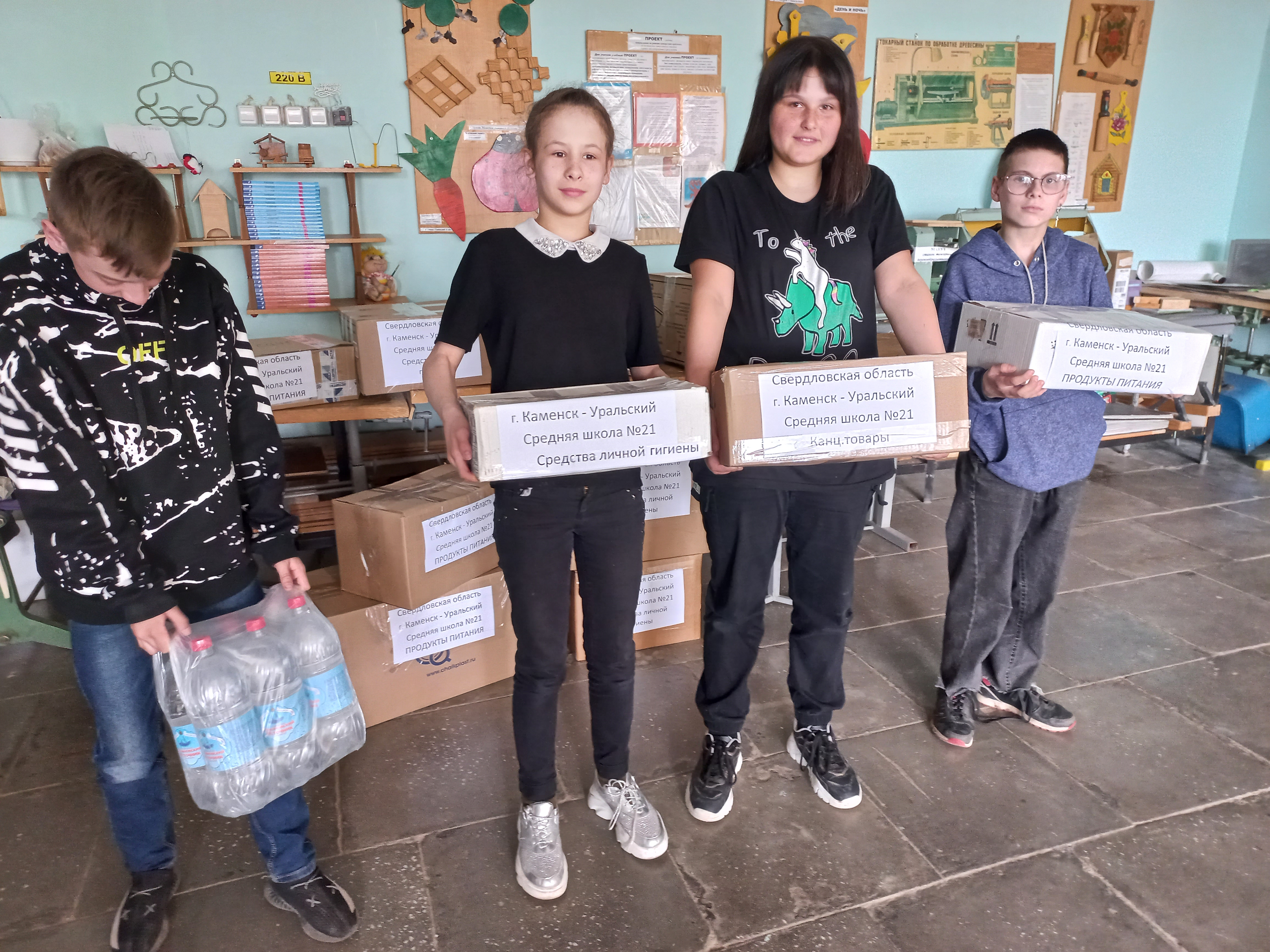 По всей России проходит благотворительная акция сбора гуманитарной помощи для жителей ДНР и ЛНР. Учащиеся, родители и педагоги Средней школы №21 присоединились к этой акции. В течение недели в школе №21 было собрано несколько коробок с предметами первой необходимости: мыло, зубная паста, шампунь, стиральный порошок, средства гигиены для детей и взрослых, продукты питания и многое другое. Представители Совета старшеклассников уверены, что собранная ими помощь позволит людям, оказавшимся в трудной жизненной ситуации, почувствовать тепло и заботу. Все собранные вещи были упакованы и переданы в «Красный крест» г. Каменска –Уральского для централизованной отправки в ДНР и ЛНР. Представитель «Красного креста» Бурко Л.А. выразила благодарность за активную жизненную позицию всем неравнодушным людям, принявшим участие в акции.