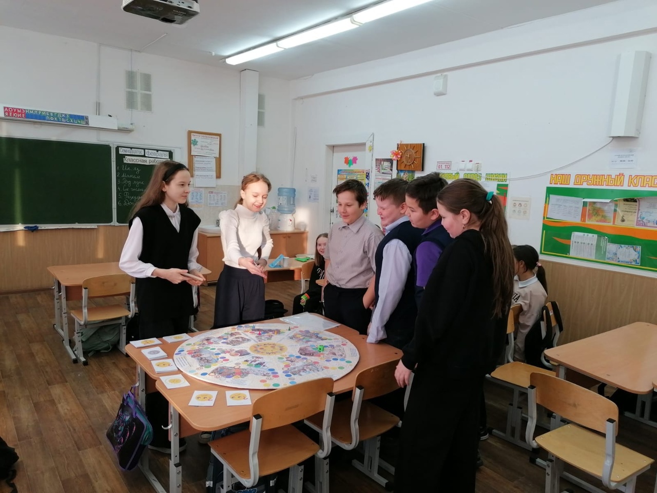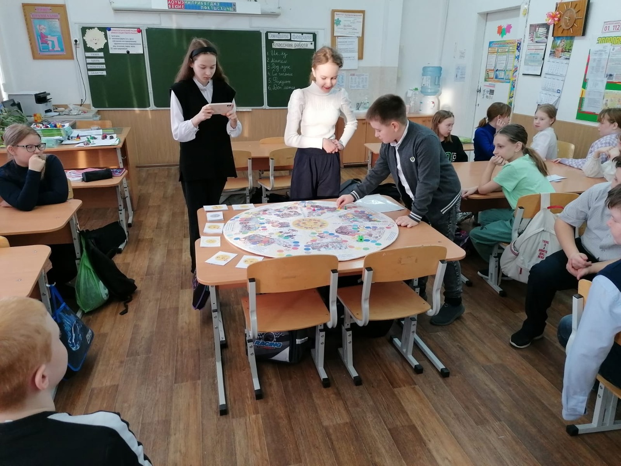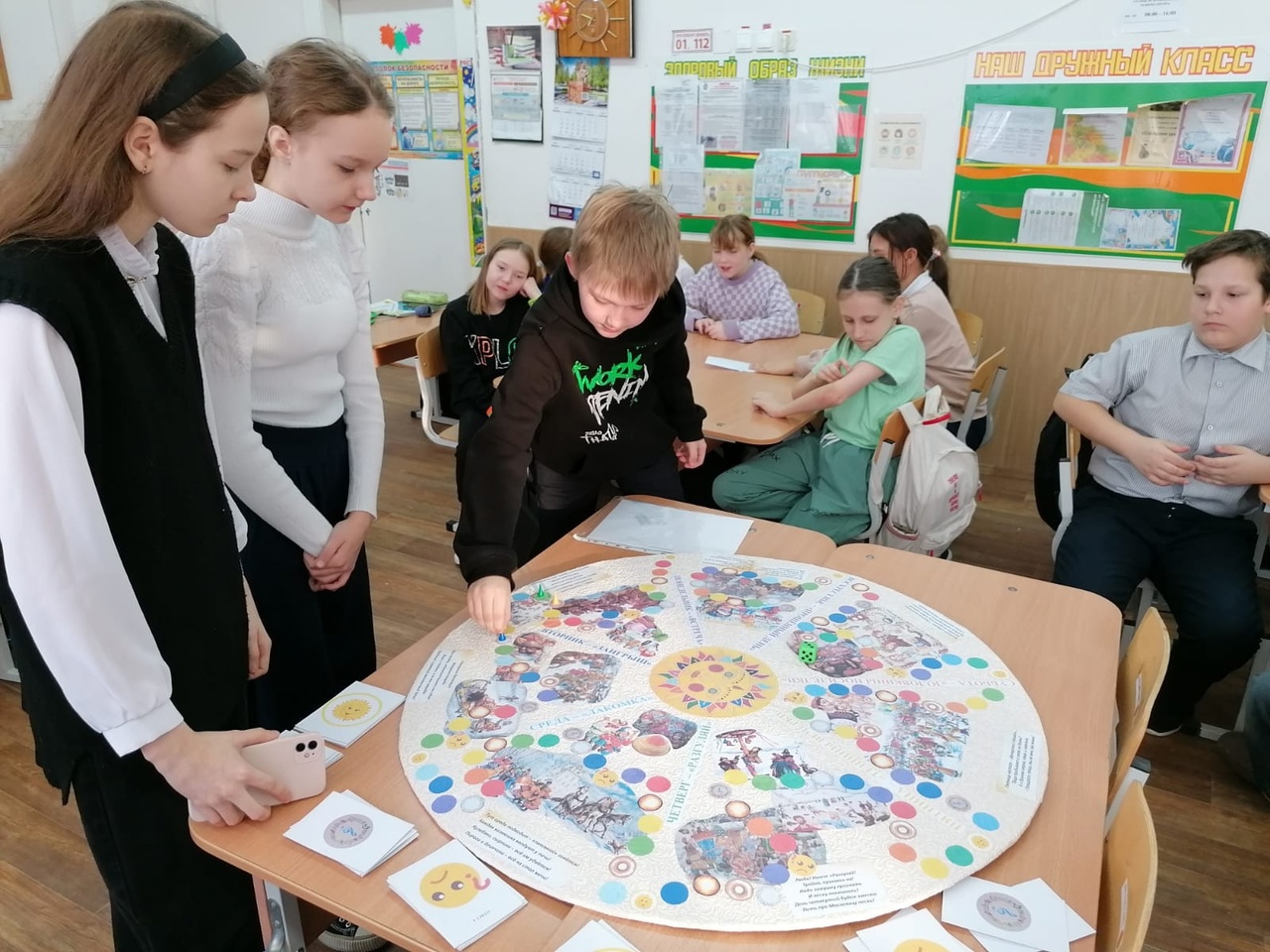Помимо Нового года в русской культуре есть еще один традиционный праздник, который народ гуляет с размахом, представлениями, весельем, танцами, песнями, хороводами и вкусными угощениями – Масленица. В преддверии этого праздника учащиеся 6 «Б» класса (классный руководитель Федорова Элеонора Николаевна) презентовали игру «Масленица» для обучающихся 4 «В» класса. Эту игру дети с классным руководителем сделали своими руками.