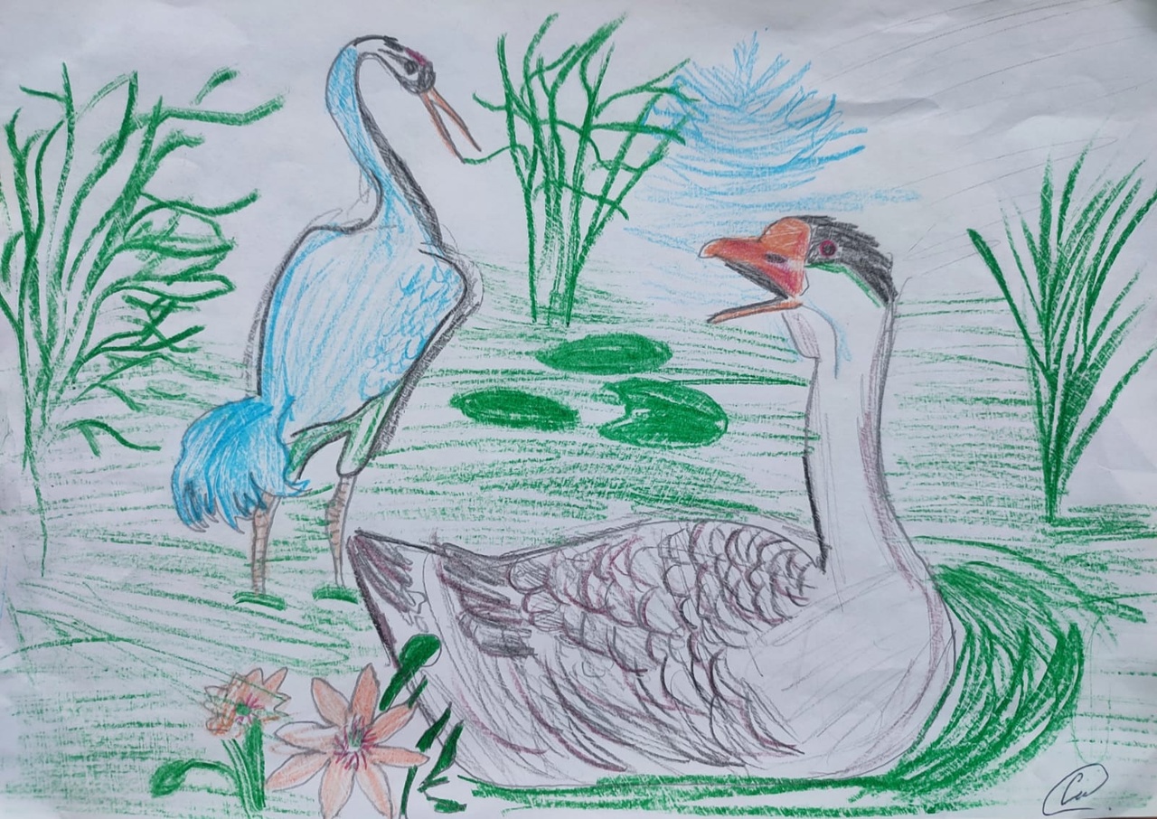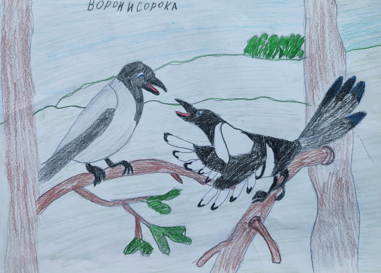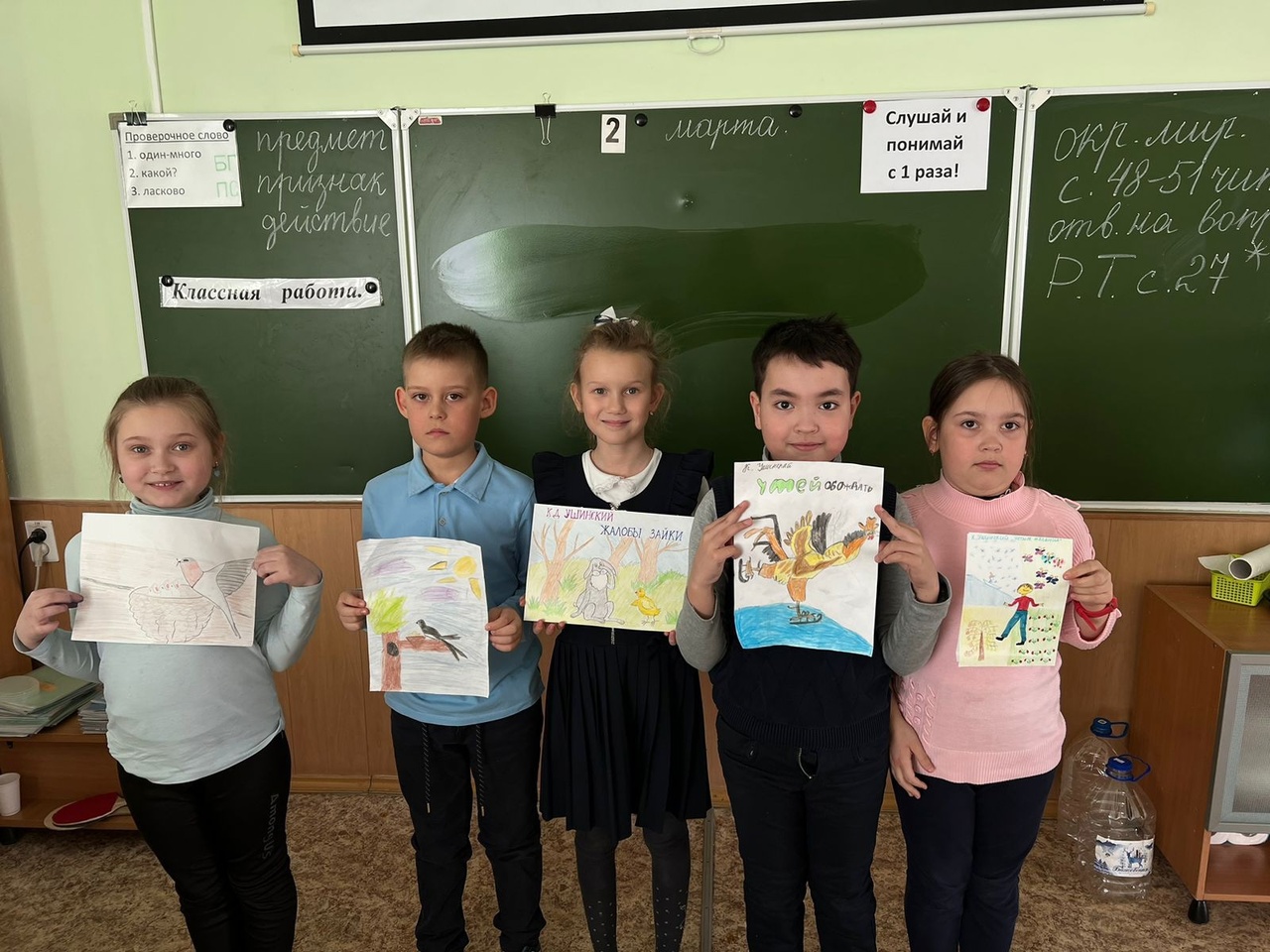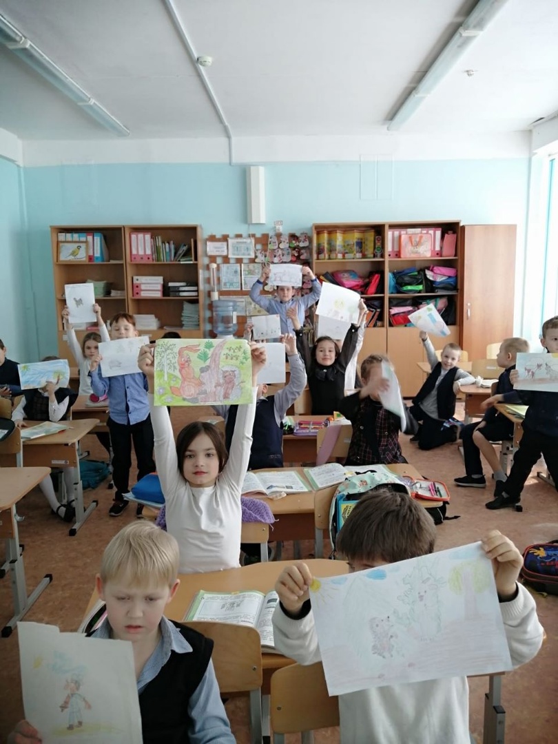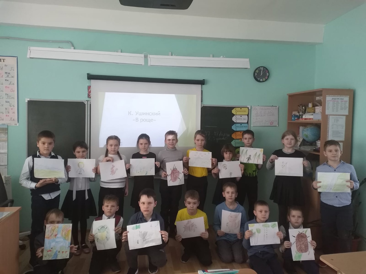 2 "Б" читали сказку К. Д. Ушинского "В роще" по ролям и рисовали рисунки.