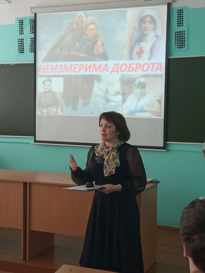 «Неизмерима доброта» - так назывался урок, проведённый Андросенко Юлией Владимировной из библиотеки им. А. С. Пушкина для учащихся 9 Б класса 02 марта. Памяти сестёр милосердия, медицинских сестёр была посвящена эта встреча.