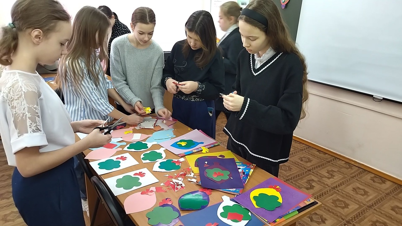 3 «Г» класс (классный руководитель Костромина И.Л), 5 «В» класс (классный руководитель Вайнберг Н.В), 6 «А» класс (Лыкова И.В), 6 «Б» класс (классный руководитель Федорова Э.Н) изготовили поздравительные открытки для жителей Донецкой и Луганской Народных Республик.