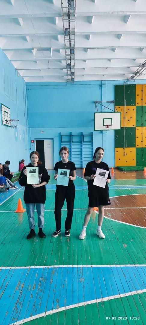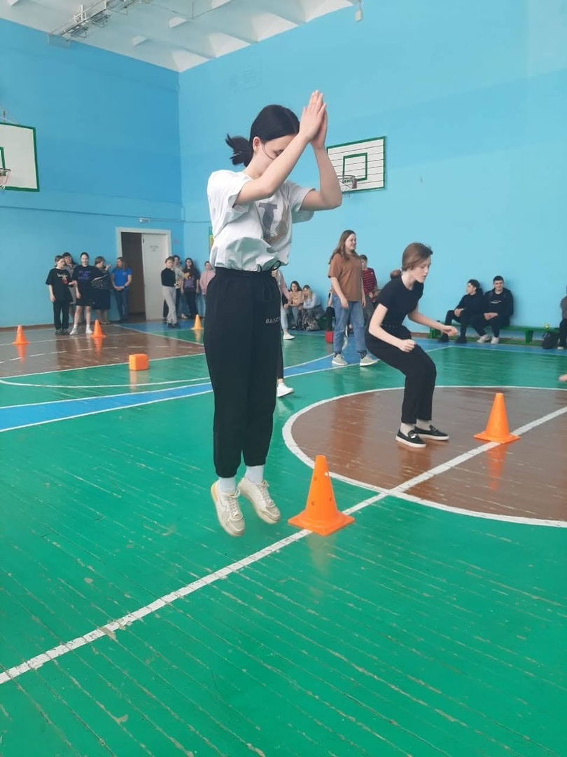 Наши старшеклассницы соревновались в заданиях на силу, ловкость, скорость и выносливость. Они прыгали через препятствия и скакалку, приседали, выпрыгивали и соревновались в челночном беге. Победу одержали команды 8 "Б" и 9 "А" классов. На втором месте команды 8 "Г" и 9 "В", на третьем месте команды 8 "А" и 9 "Б". Все команды- победители награждены грамотами, а участники сладкими призами.