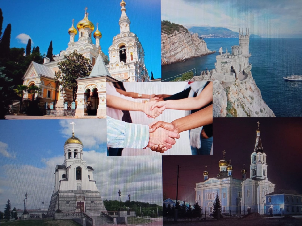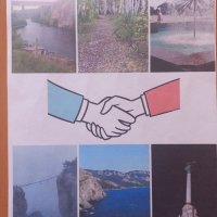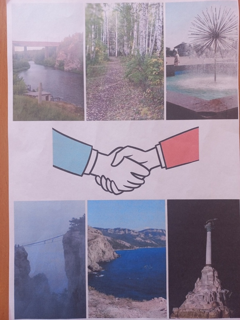 Участникам необходимо было нарисовать рисунок или создать фотоколлаж с достопримечательностью своего города и достопримечательностью полуострова Крым, между этими достопримечательностями должен быть изображен символ дружбы (рукопожатие). Предлагаем работы, выполненные обучающимися нашей школы.