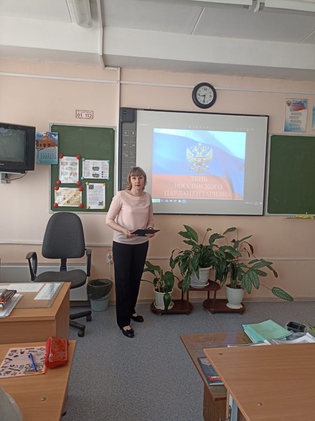 27 апреля в России ежегодно отмечается памятная дата – День российского парламентаризма. Праздник был установлен 27 июня 2012 г., когда Президент Российской Федерации Владимир Путин внёс изменения в федеральный закон «О днях воинской славы и памятных датах России» от 13 марта 1995 г. Памятная дата призвана способствовать популяризации деятельности Федерального собрания РФ, а также законодательных органов субъектов Российской Федерации. Этот день позволяет привлечь внимание к деятельности законодательных органов власти, их ответственности за процесс становления современного гражданского общества, укрепление российской государственности. Впервые официальные мероприятия в День российского парламентаризма прошли в 2013 г. В этот день в нашей школе учитель истории и обществознания Селюнина Оксана Александровна провела уроки парламентаризма в 9 -х классах.