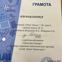 В фестивале приняла участие команда «Дети Урала» (учащиеся 7 «Б» класса, под руководством Поткиной Е.В. и Фоминовой В.А.), ребята разучили коми-пермяцкую народную игру «Баля табун» (Стадо). Ведущие игры провели данную игру для других участников проекта.