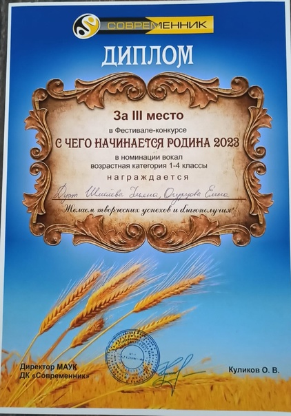 28 апреля в ДК Современник состоялся Фестиваль-конкурс "С чего начинается Родина 2023". Учащиеся нашей школы приняли активное участие. Было подготовлено 9 номеров, которые прошли строгий отбор.