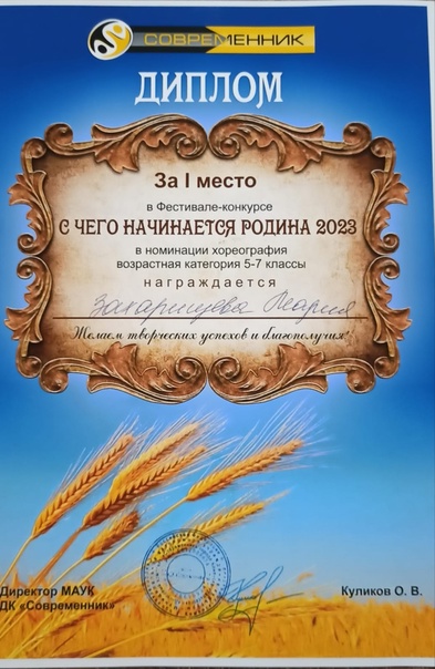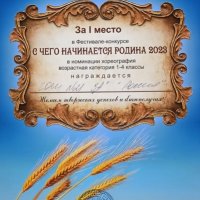 💃 В номинации хореография (5-7 классы) Захарищева Мария заняла 1 место.