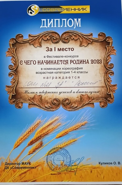 🕺 В номинации хореография (1-4 классы) 3 "А" занял 1 место с танцем "Россия".