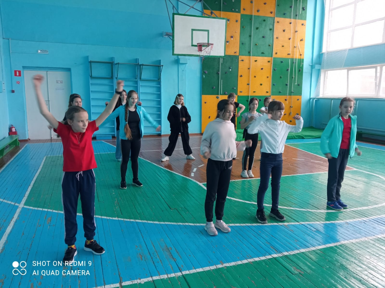 Советник директора по воспитанию Дьячков А.А совместно с учителями по физической культуре jрганизовали утреннюю зарядку с учащимися школы в спортивном зале и на школьном стадионе. Она проходила как обычная зарядка, состоящая из комплекса физических упражнений. В некоторых класса зарядка была танцевальной.