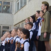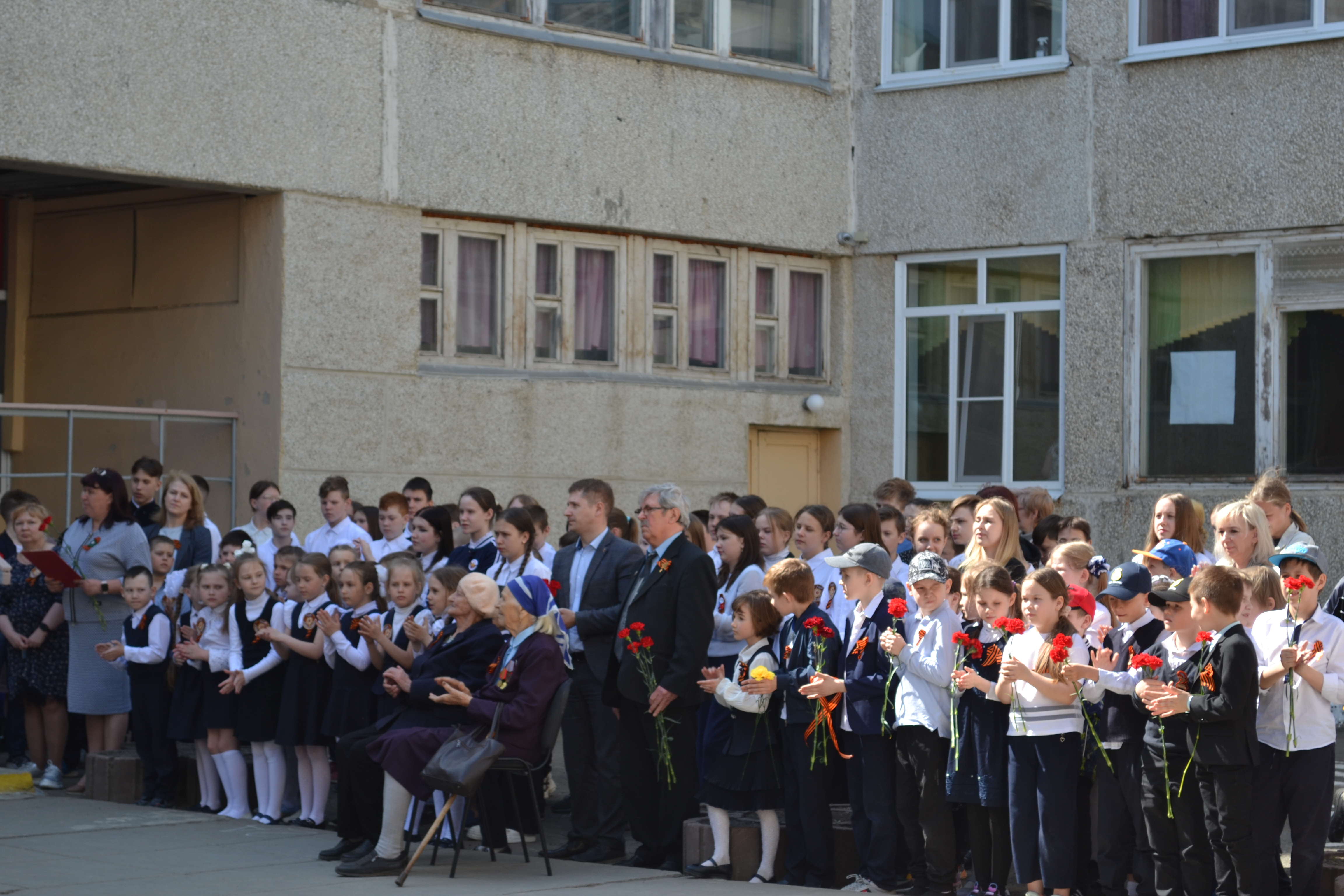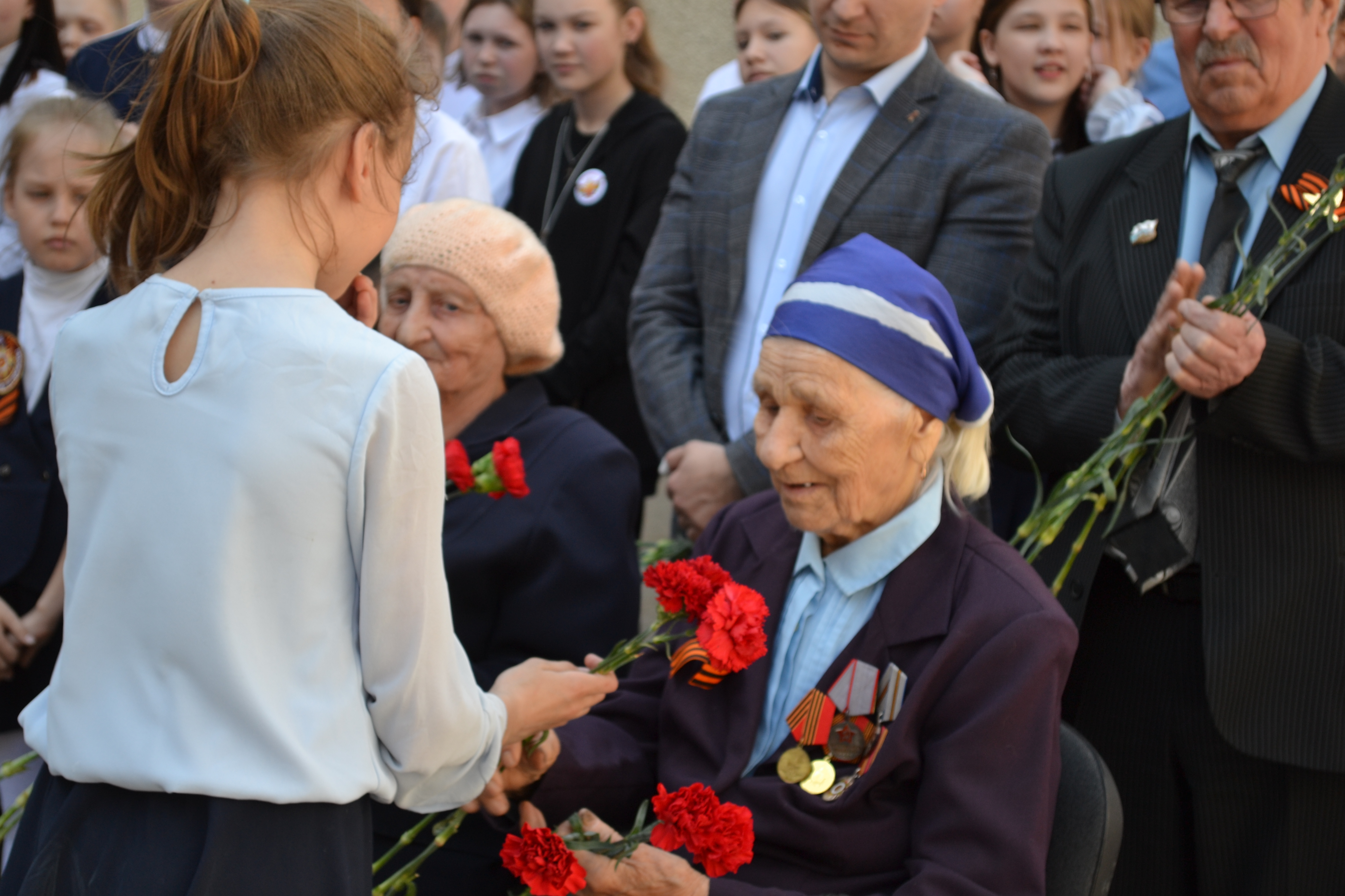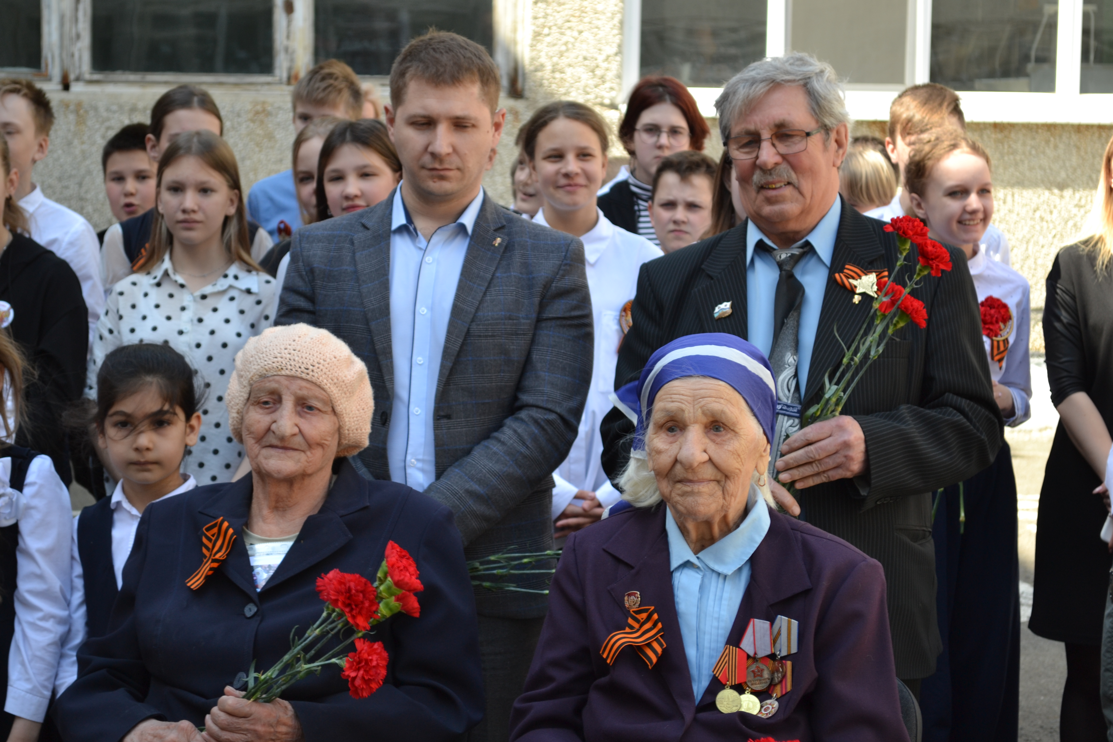 Школа встретила почётных гостей. На митинге присутствовали труженики тыла - Пестерева Анисья Алексеевна и Аристархова Антонина Петровна, а также директор по маркетингу КУЗОЦМ Горских Максим Андреевич и председатель Совета Ветеранов и тружеников тыла КУЗОЦМ Бельский Виктор Брониславович.