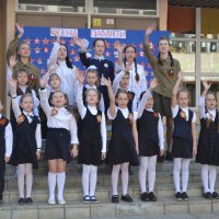 Знамённая группа внесла флаг Российской Федерации. Право поднять флаг предоставили ученице 6 "А" класса Паздниковой Анастасии.