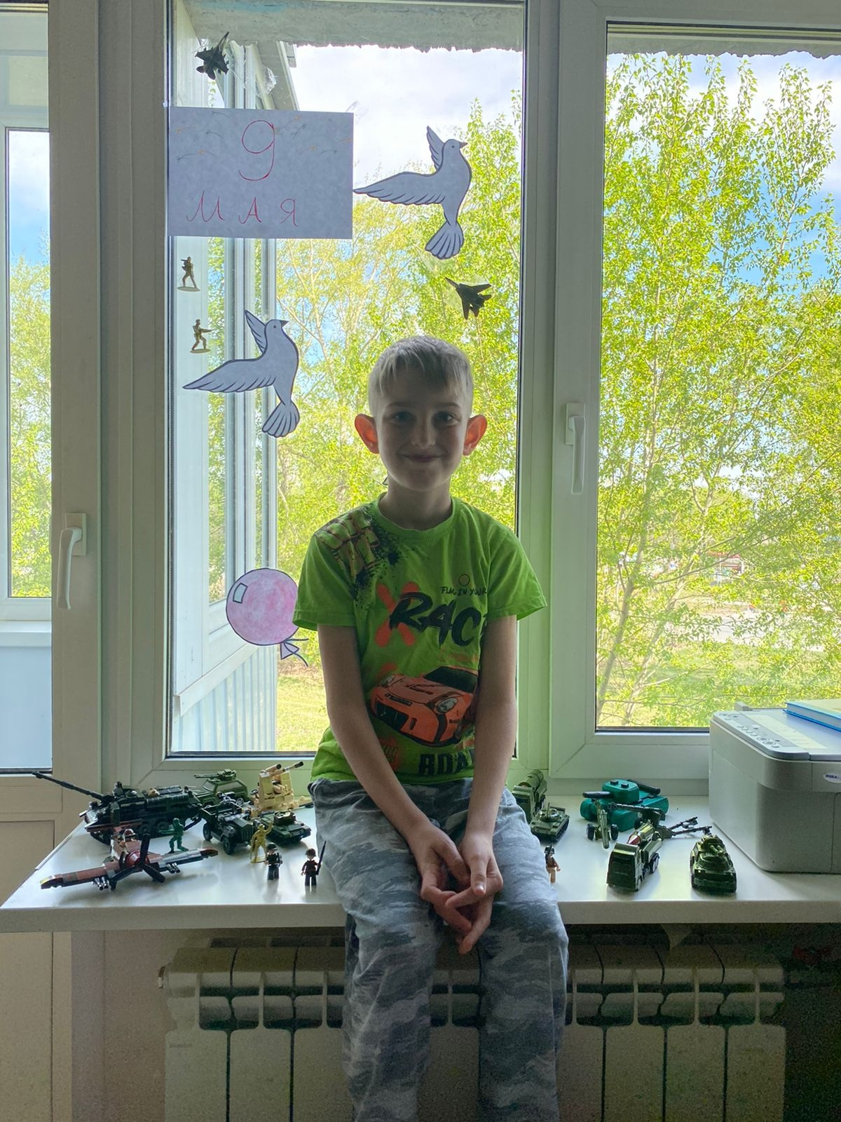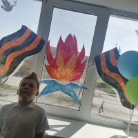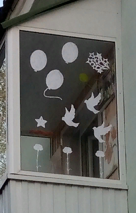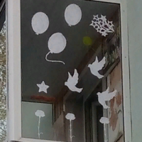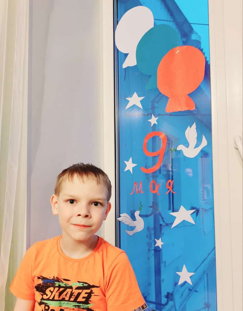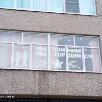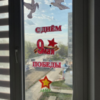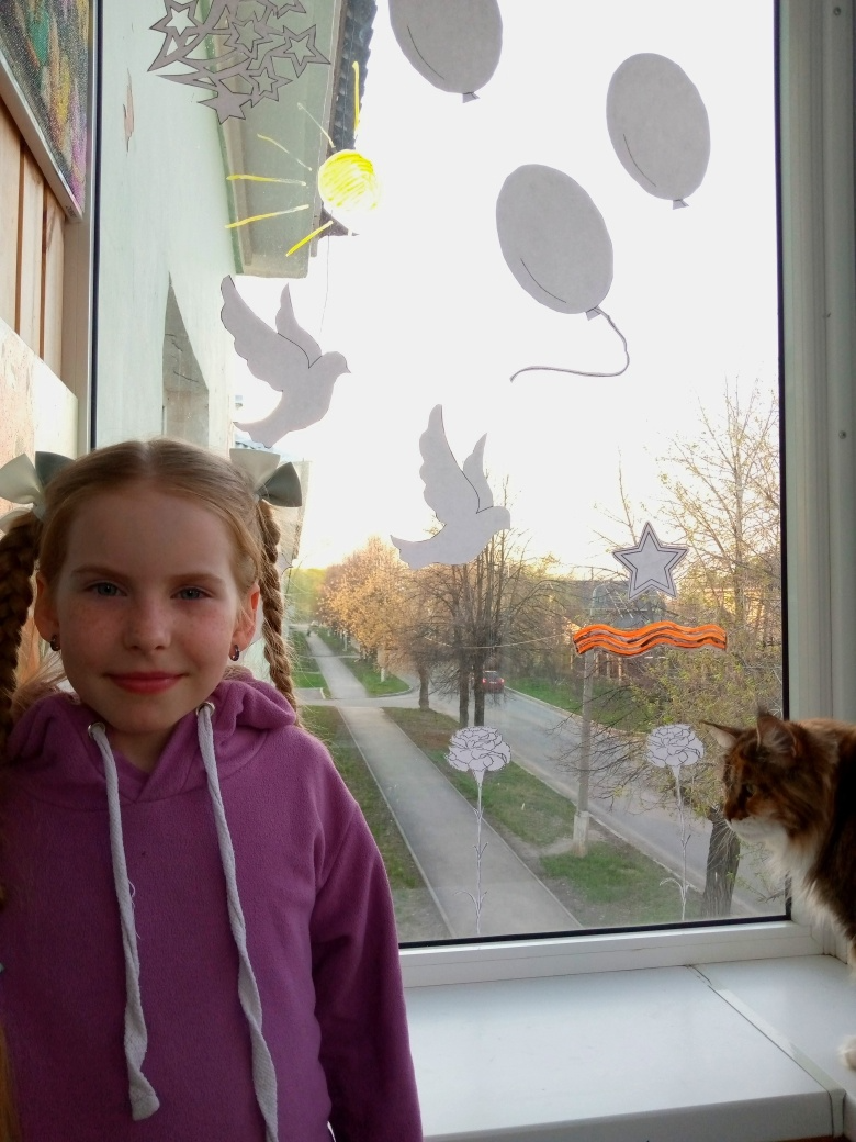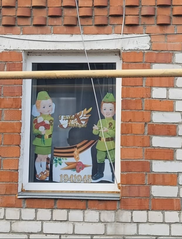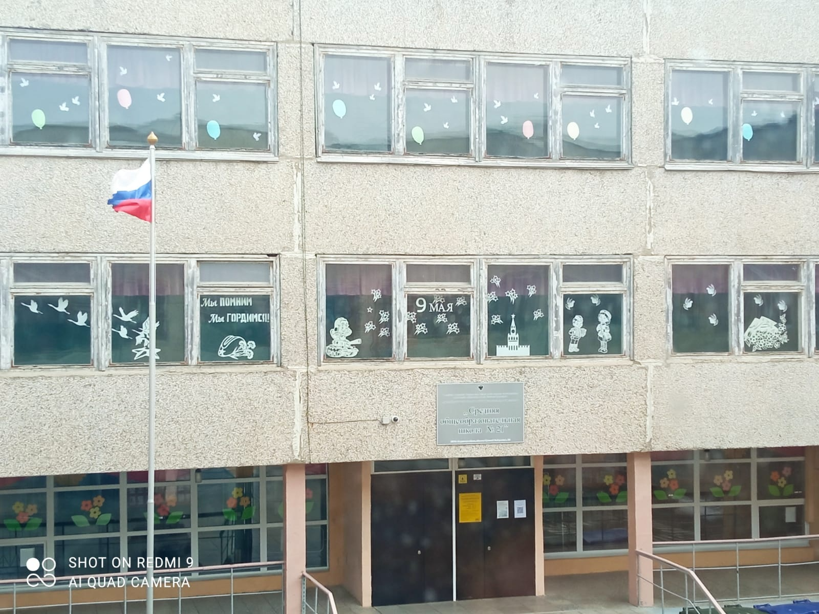 Участники акции оформили окна школы с помощью рисунков, картинок, надписей, посвященных Победе советского народа над фашизмом в Великой Отечественной войне. Учащиеся творчески подошли к оформлению окон, вырезали по трафаретам символы победы и праздника: голубей, воздушные шары, звёзды, салют.