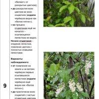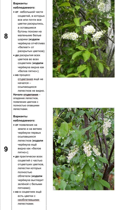В качестве объекта для наблюдений была выбрана черемуха обыкновенная. Надо было оценить растение по фенологической балльной шкале. Часть этой шкалы можно увидеть на фото.