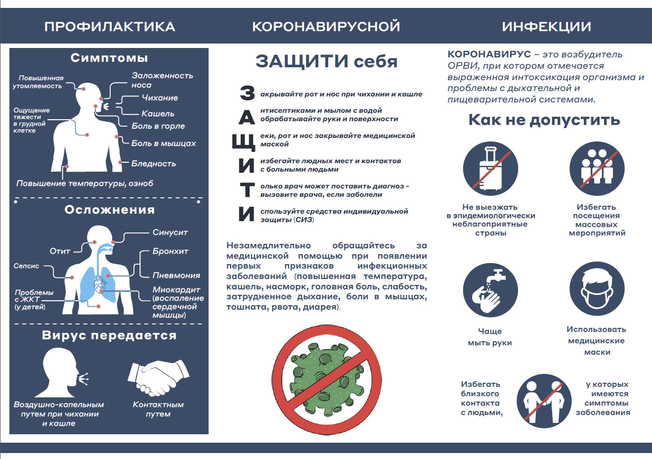 Коронавирус — это возбудитель ОРВИ, при котором отмечается выраженная интоксикация организма и проблемы с дыхательной и пищеварительной системами. Пути передачи: воздушно-капельный (при кашле, чихании, разговоре), воздушно-пылевой (с пылевыми частицами в воздухе), контактный (через рукопожатия, предметы обихода).
